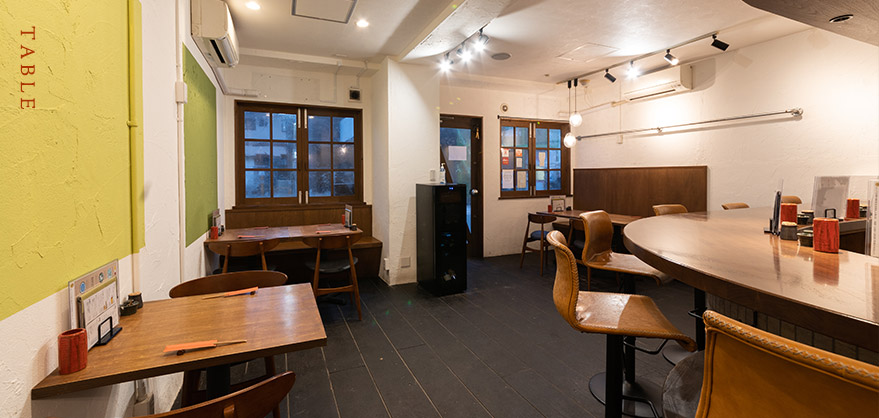 まるでカフェのような温かみのあるおしゃれな店内には、一人飲みでも使いやすい6席のカウンターをはじめ、3卓のテーブル席をご用意しています。ゆっくりとお過ごしいただけるよう、ゆとりのある空間づくりをしていますので、デートやお仕事帰りの夜ご飯、ディナーにも最適。大人数でのお集まりの際は、最大20名様まで貸切も承ります。